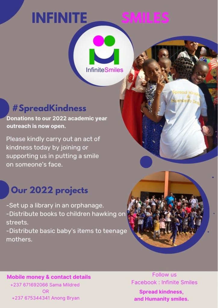 We are looking for some support and recommendations to help us secure some much-needed funds for the #Infinitesmiles movement, an initiative that spreads kindness and love to humanity in any form possible. We give hope to vulnerable kids, teenage mothers and build self-esteem and confidence in vulnerable persons.